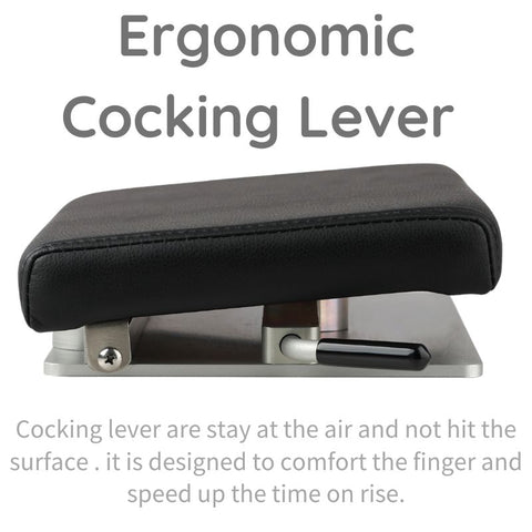 Ergonomic toggle lever Toggle lever are stay at the air and not hit the surface. it is designed to comfort the finger and speed up the time on rise.Tension control responsiveness is best described as snappy. Set the tension control knob for your patient, provide a slight amount of applied pressure & the drop mechanism will release for a fluid crisp drop.